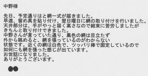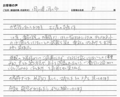 低価格で取り付けられる、ご注文いただいた はとあみ20 の選択が適切で良かったと思います。